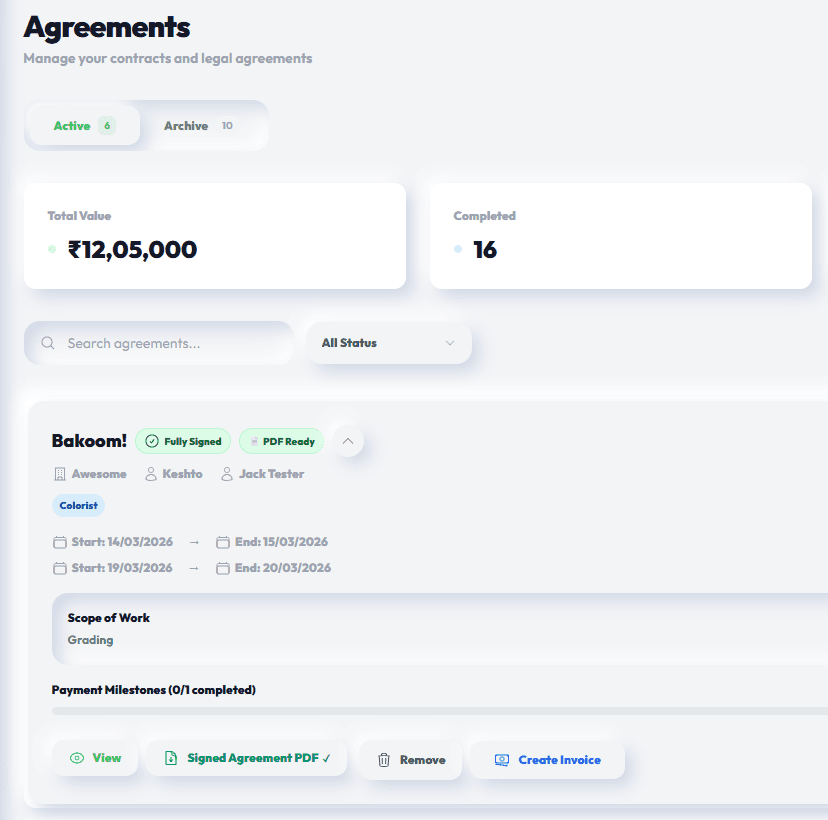 We are here to restore balance. Our platform protects freelancers from late payments, stolen credits, and ambiguous terms, transforming conversations and handshakes into signed agreements.